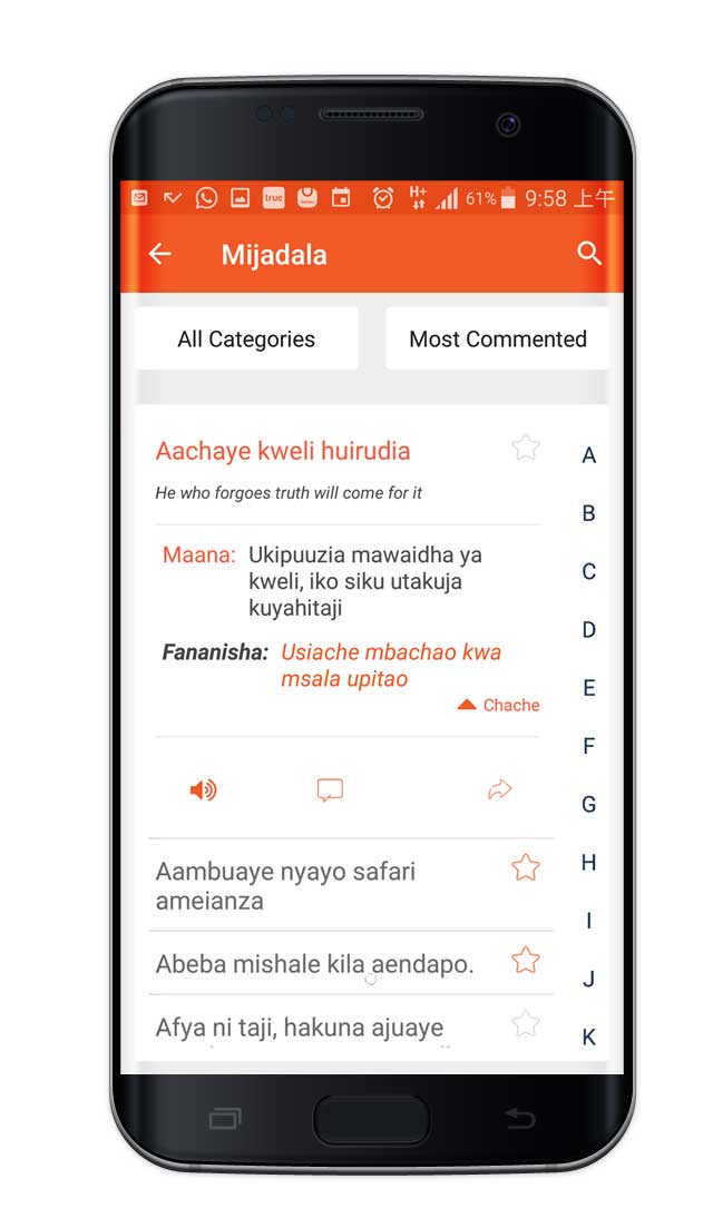 Baadhi ya features kwenye menu ya Swahili sayings